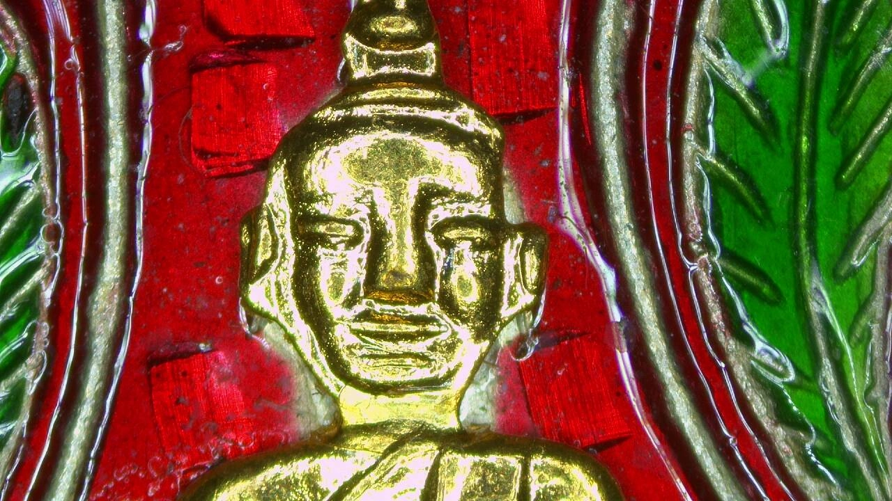เหรียญหลวงพ่อวัดบ้านแหลม ปี 2460 เนื้อนิกเกิลผสมลงยาหน้ากากทอง