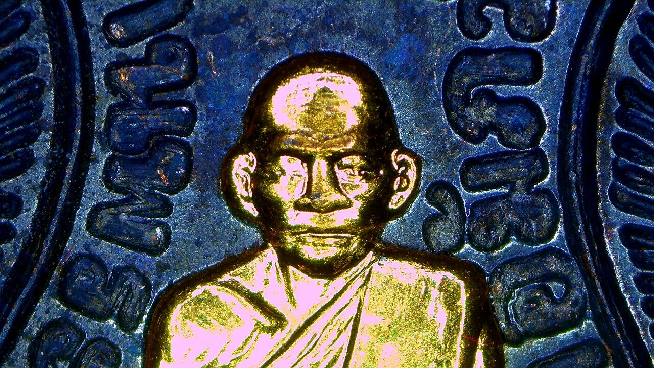 เหรียญหลวงพ่อเพชร วัดเกาะพงัน ปี 2463 เนื้อทองแดงรมดำ หน้ากากทอง